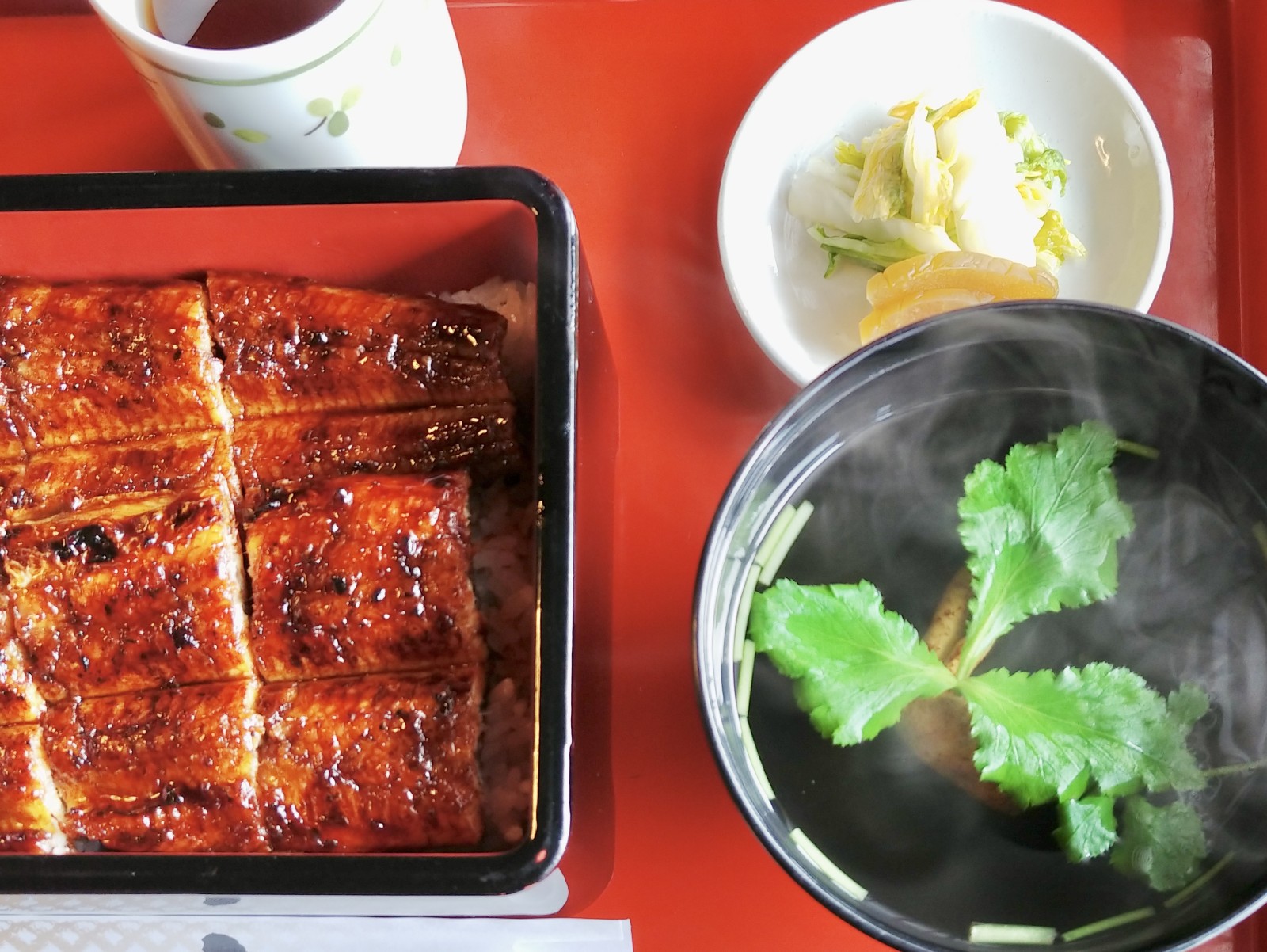 趣ある古民家を、木のぬくもりある昔ながらの佇まいで、祖父母の家を訪れたような懐かしい気持ちになりながら案内されたのはお座敷。神西湖を眺めながら、料理が運ばれてくるのを待つこと30分。国産のうなぎを注文ごとに丁寧に焼き上げるため、時間は少々かかる。皮はパリッと香ばしく、身はふっくら。炭火の香りがほどよくたち、油はしつこさがなく口の中でとろける。タレがまた抜群で、最後のひとくちまで飽きることがない。肝吸いや漬物といった付け合わせも手抜きがなく、一品一品店主のこだわりが光る。