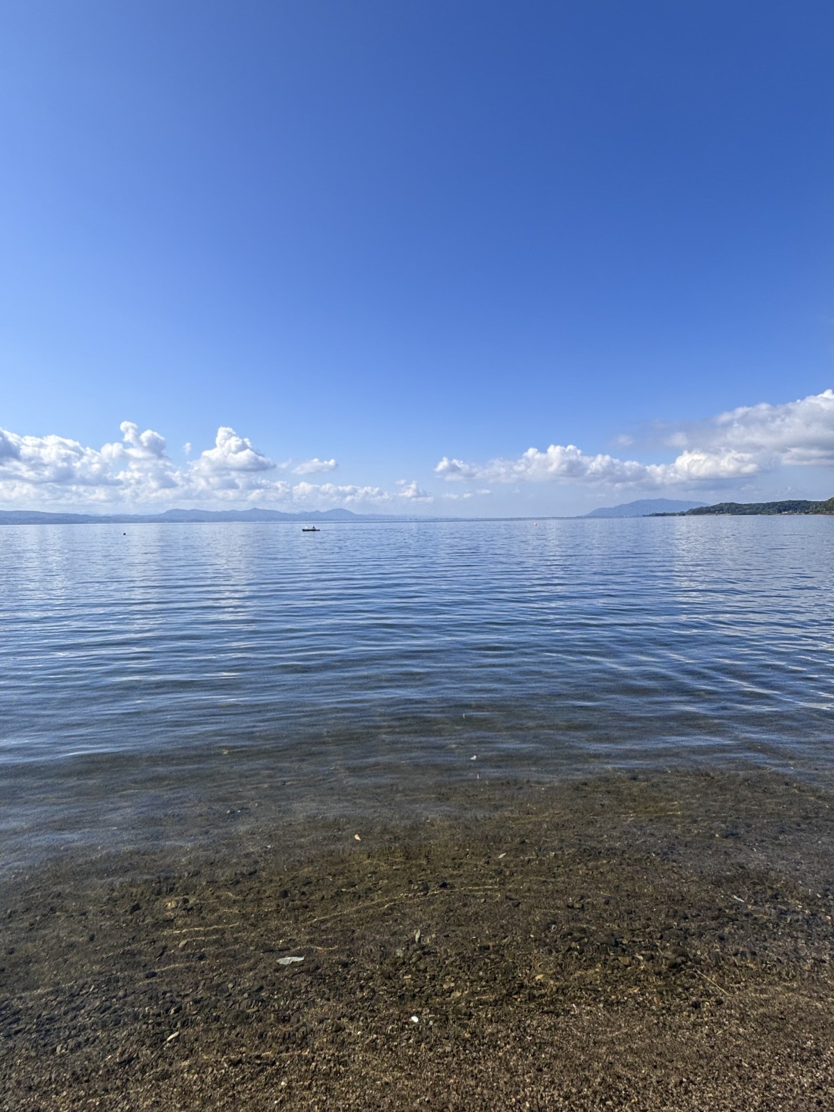 砂は宍道湖ならではという印象を受けましたが、波が押し寄せてくると海と見間違いそうになります。以前、滋賀県にある琵琶湖に立ち寄った際にも、海みたいだと感じたことがあったのですが、陸に囲まれているのに海があるように錯覚してしまいそうで不思議な感覚です。ちなみに湖岸の波は主に風が水面にあたることで発生しています。そのため風が強い日や、台風が近づいているときなんかは、大荒れの海のように湖岸にも激しい波が打ち付けます。天気が穏やかでない日は、湖岸であろうと充分に安全を確かめてから近づくようにしましょう!