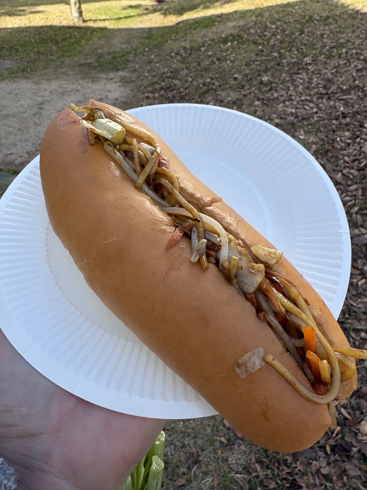 外で売られていた焼きそばパンも鉄板でちゃんと焼きそばを作っていたのでこれは確実に美味しいやつと思い購入。青空の下で食べる焼きそばパン最高に美味しかったです。
