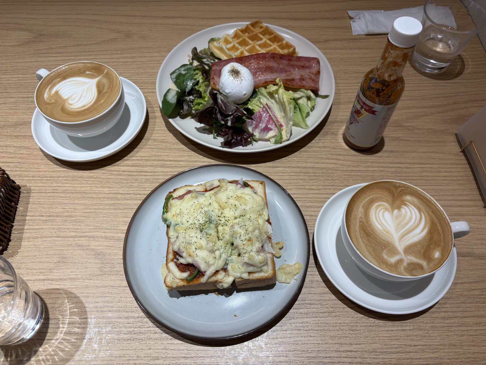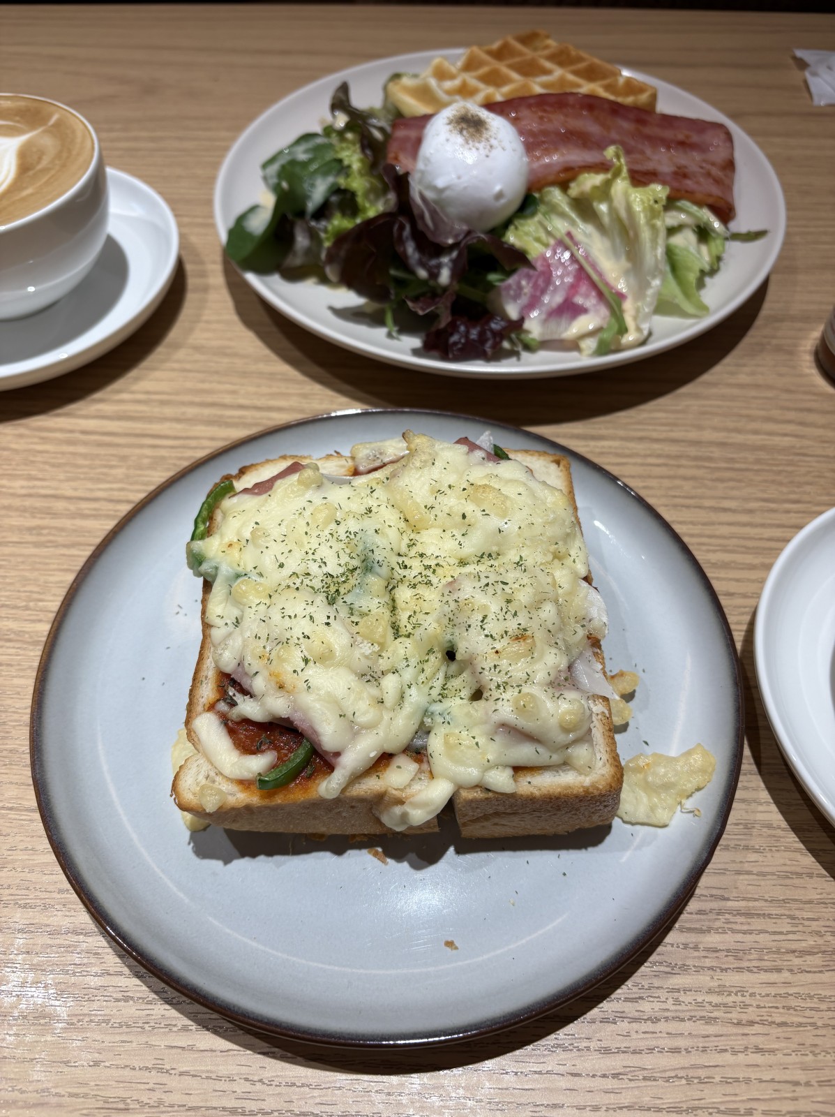 オシャレな店内はこだわりの組子細工をあしらっており、木のぬくもりを存分に感じられる作りになっていました。観光客はもちろんのこと地元の方にも好評のモーニングも召し上がることができ、ランチやカフェメニューも豊富で時間帯を変えて訪れてみたいと思いました。今回はモーニングを召し上がりに行って来ました。モーニングセットのメインは、トーストとワッフルの2種類。メインの他に、サラダ・ベーコン・ポーチドエッグをワンプレートにドリンクも付いて、心もお腹も満たせるセットになっております。注文したのはワッフルモーニングセットと単品メニューで人気のピザトーストにカフェ自慢のコーヒーを頂いて来ました。とても充実したモーニングが過ごせて凄く楽しかったです。出雲大社を参拝する時は息抜きに寄ってゆっくり過ごすのが良いと思います。朝一番の特別な時間を「cafe koharu」でお過ごしいただき、素敵な一日のスタートを過ごしてくれたら嬉しいです。最後まで読んで頂きありがとうございました。