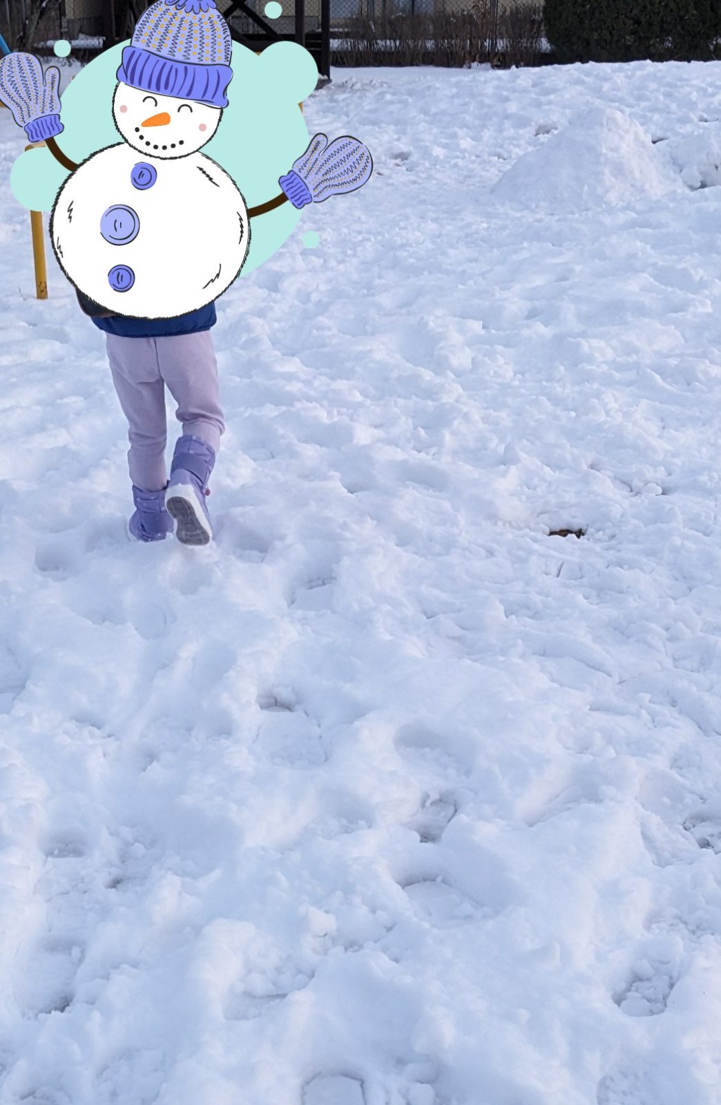 積もった雪に子供は大喜びしており、外に出れば雪を踏む「ぎゅっぎゅっ」という音や感触が楽しいようで、歩くだけでも楽しんでました。