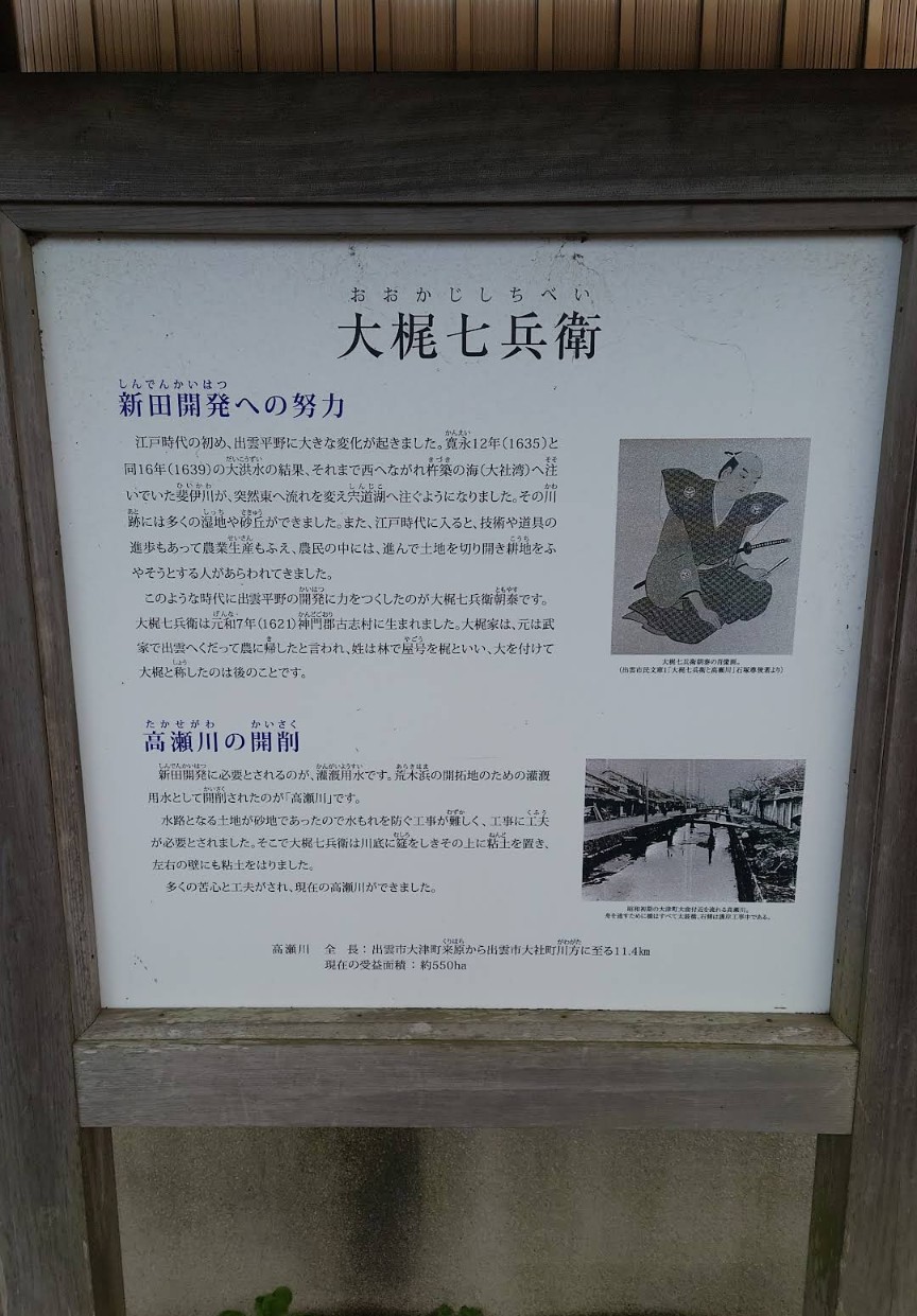 ちゃちゃIターン女子 会員No.134 2026.02.20 大梶七兵衛 出雲市駅北側の国引き中央通りを散歩していたら見かけたのでご紹介します!この像は大梶七兵衛さんの像で、この方は出雲に流れている高瀬川の開削をされた方なんだそうです。 出雲平野を開発するためには灌漑の用水路が必要でしたが、砂地のため水漏れを防ぐのが大変で、むしろを引いたり、粘土を使って大変な工事をやりとげたそうです。 大梶さんのおかげで今美味しいお米が食べられたり水を不自由なく使えていると思うと感謝ですね🙏 というわけで出雲偉人のご紹介でした! 戻る トップへ戻る