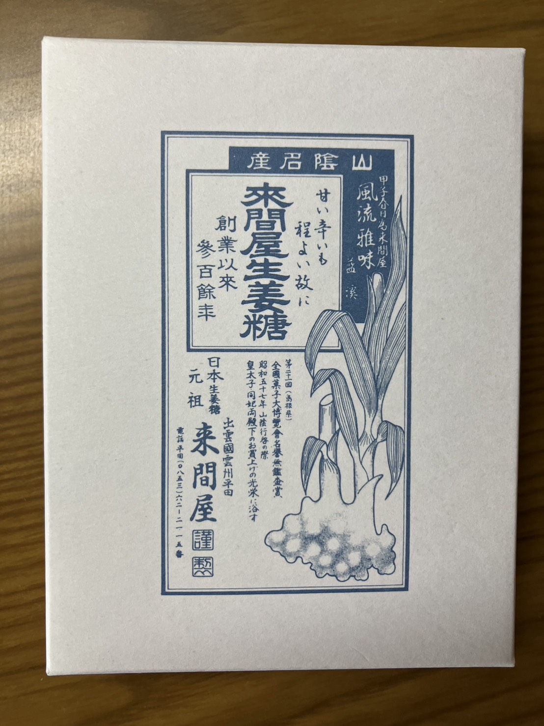先日、知り合いの方から來間屋生姜糖をいただきました。昔から作られている歴史のある生姜糖だと教えていただき、ありがたく味わいました。