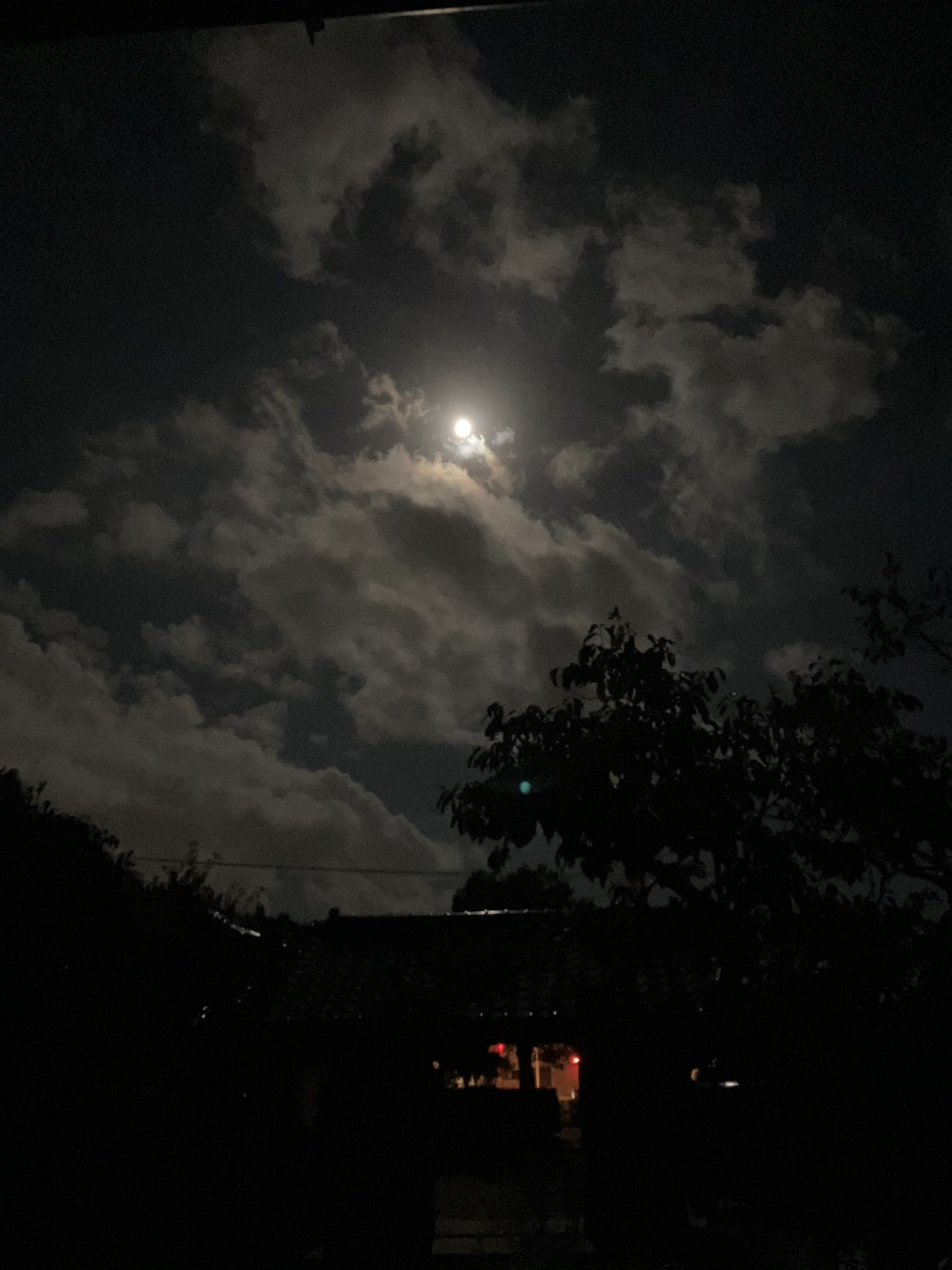 昨夜は満月ではなかったけれど、雲に囲まれた月がとてもきれいで、思わずシャッターを切ってしまいました。久しぶりに月をみてきれいだなあとつぶやきました。