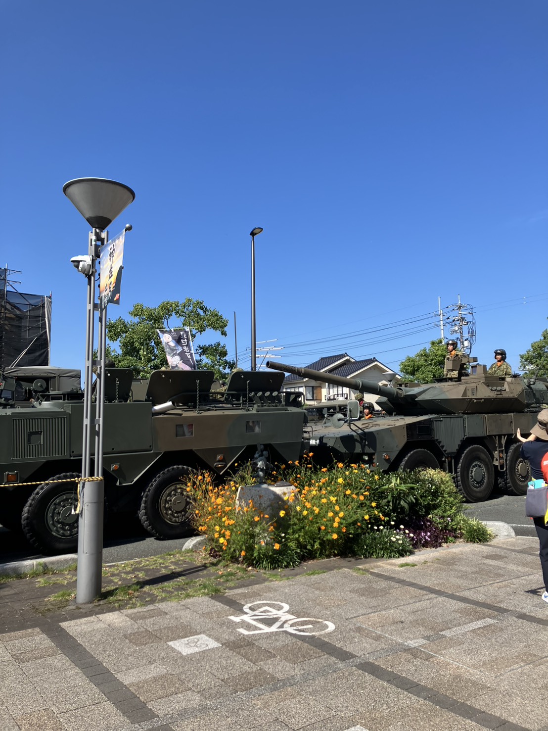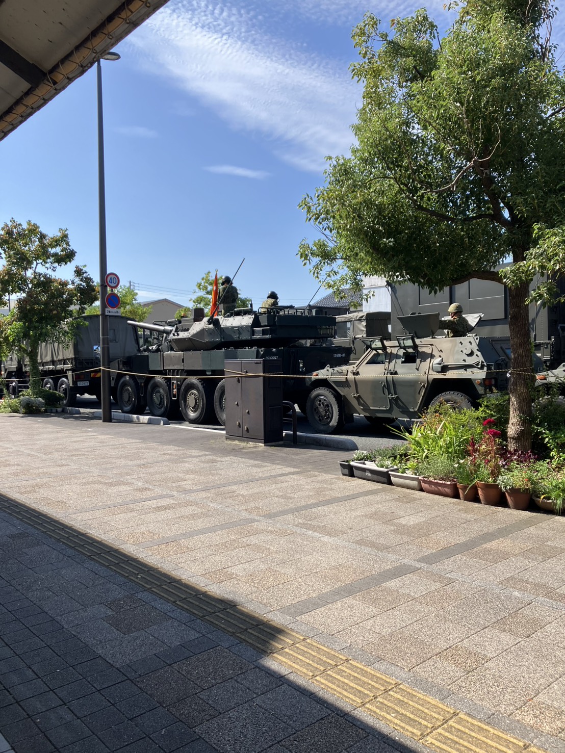 天気がよかったので、ゆめタウンまで自転車で行ってみることにしました。途中、出雲市駅前を通ったときに、たまたま陸上自衛隊のパレードに気づき、思わず見入ってしまいました。間近で自衛隊の車両を見ることができて、とても驚きました!