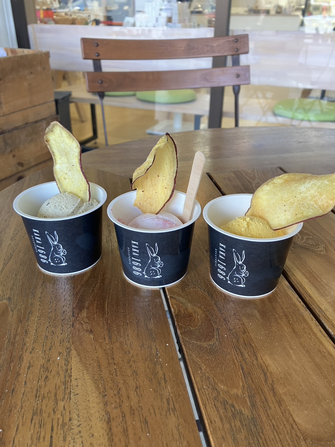 甘いジェラートとしょっぱいチップスの組み合わせがちょうどよく、おいしかったです😋