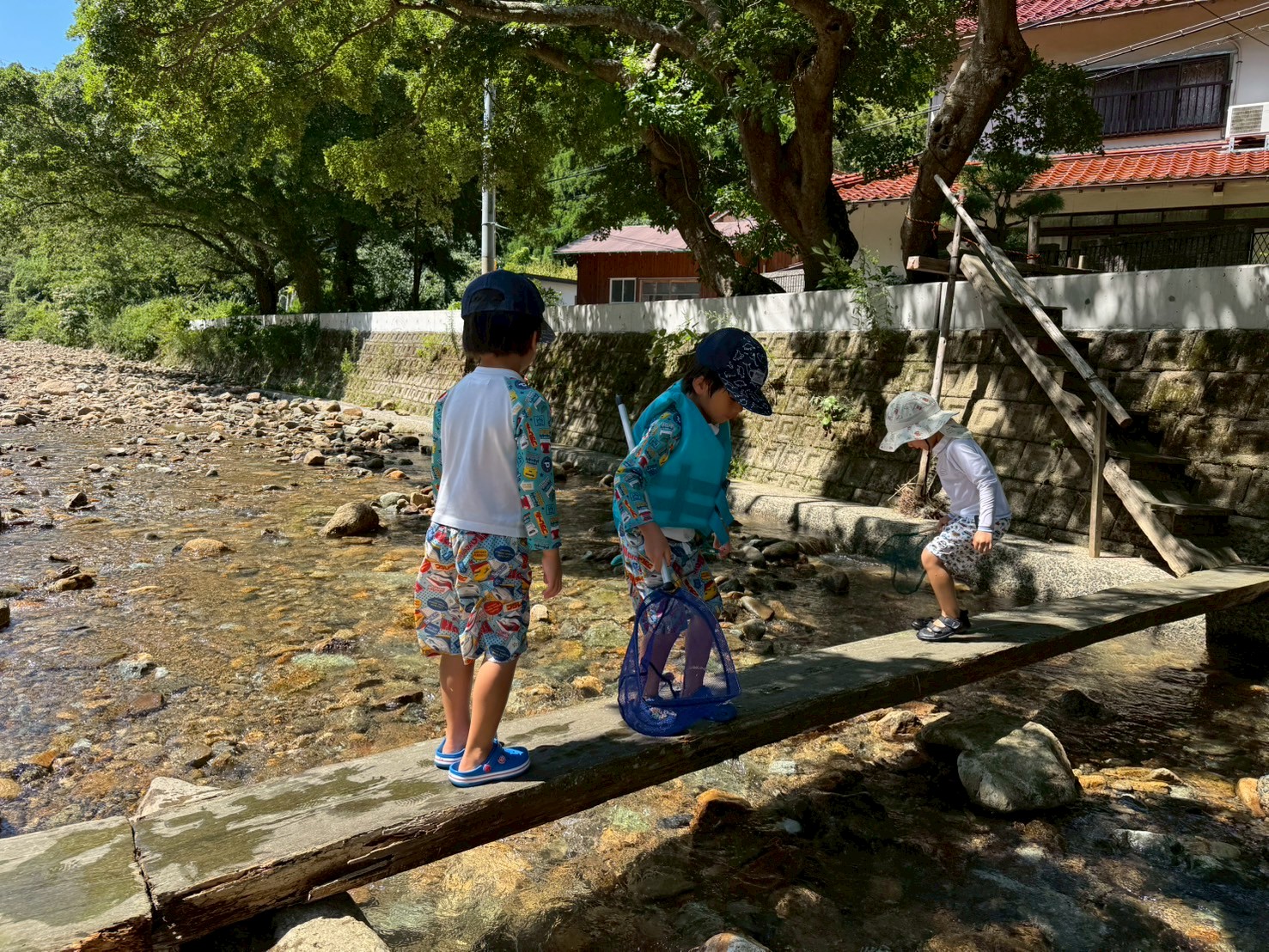 沢ガニ🦀や川エビ🦐がいて、大人の方が夢中で探していました。