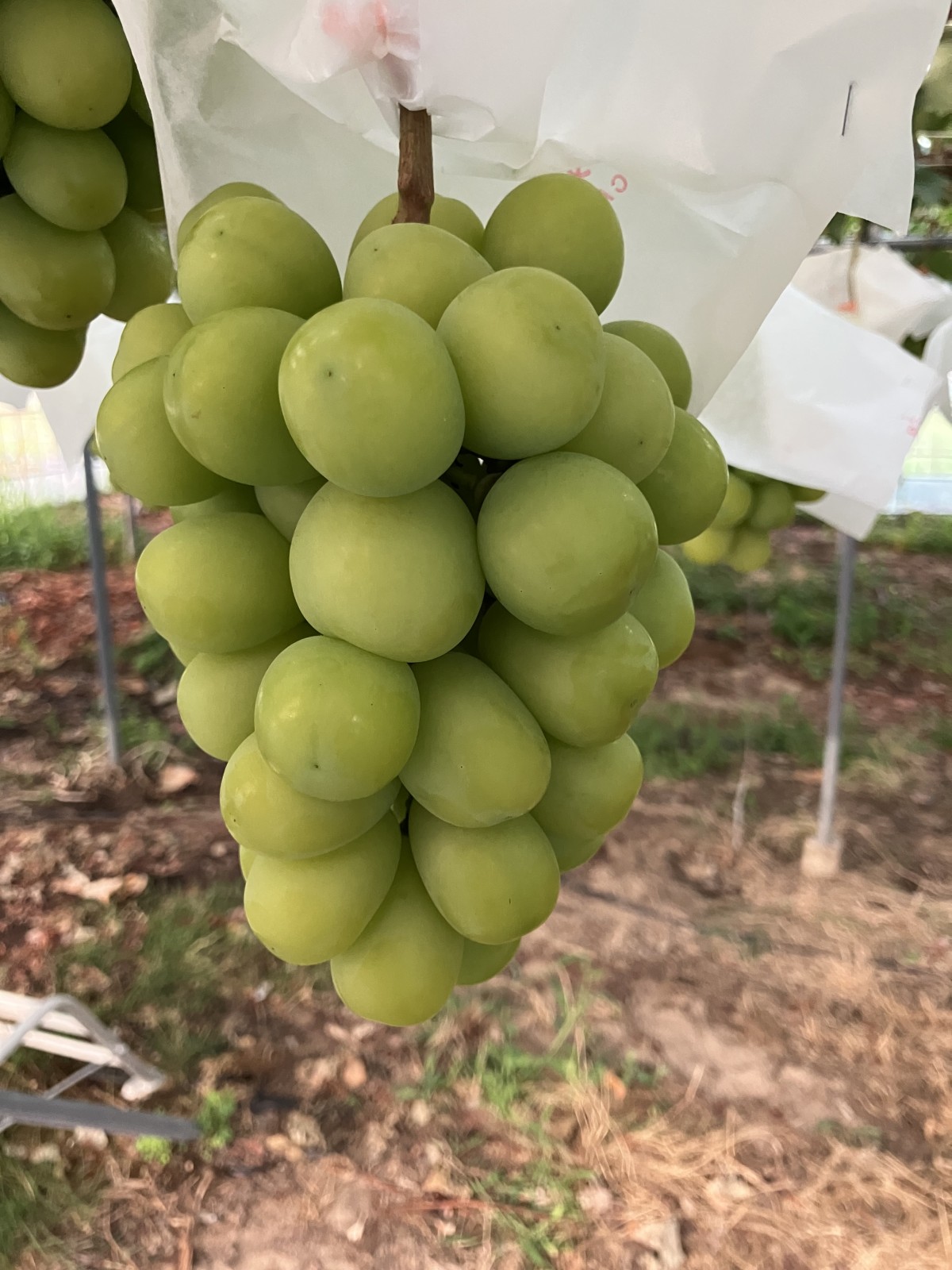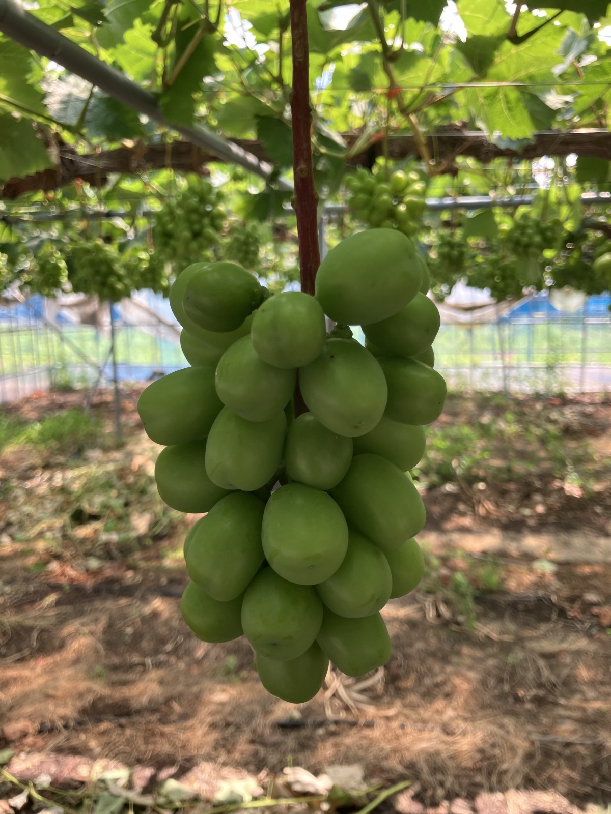 ここではシャインマスカット、デラウエア、ピオーネなどその他多くの品種を栽培しています。ぶどうは生育過程でいつもスーパーなどに並んでいる姿から大きく変わるのでそういうのも知ってもらいたくて、ぶどうの様子を定期的にアップしていきたいな〜と思っています。