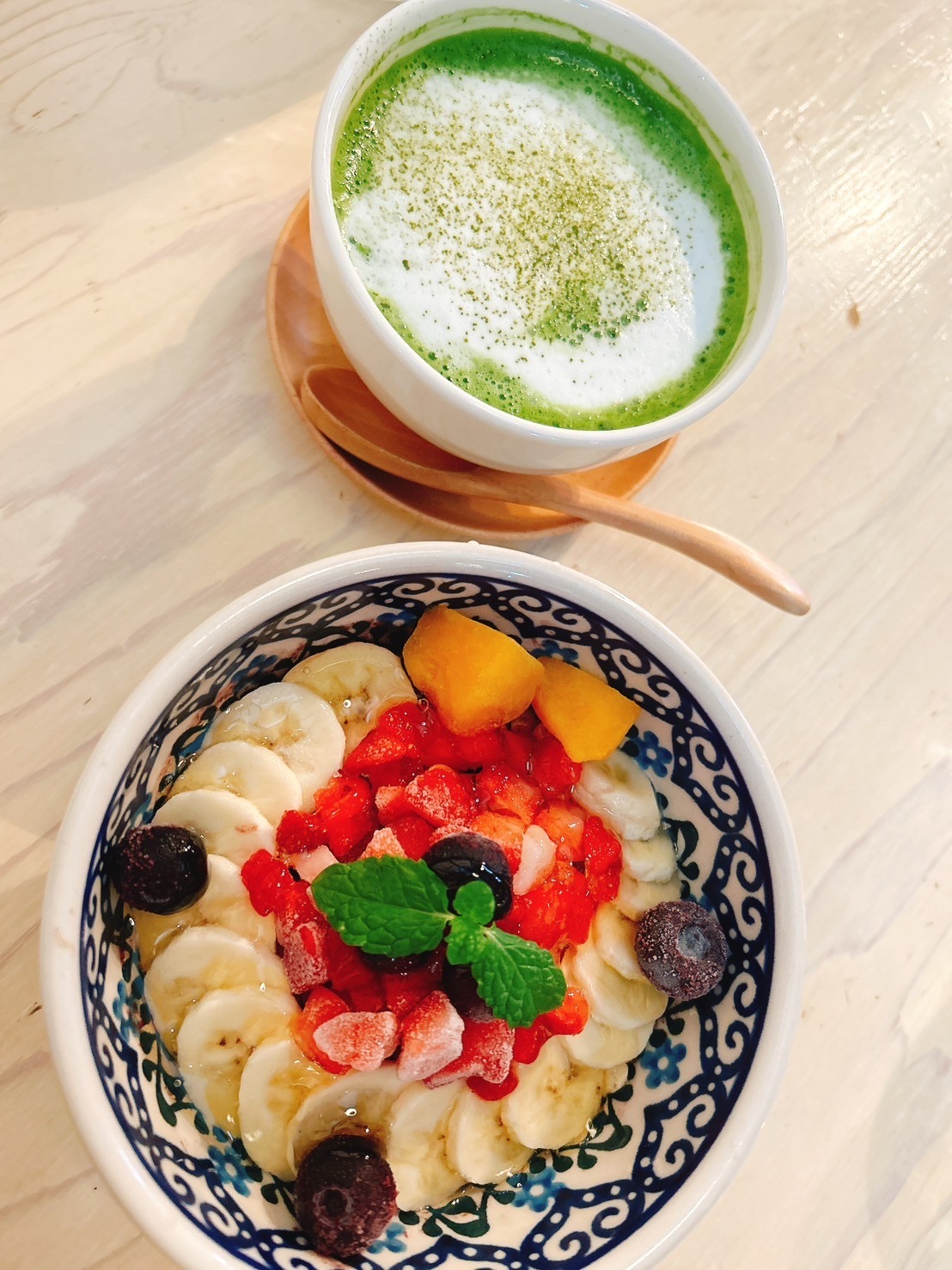 今回はアサイーボウルと抹茶ラテを注文してみました。アサイーボウルはフルーツたっぷりでとても美味しかったです!