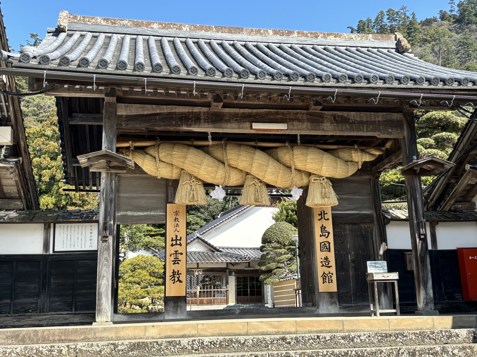 出雲大社に向かって右手、神城内で最古の建造物四脚門をくぐると北島國造館があります。 出雲國造北島家は大国主大神に神勤奉仕をなさった天穂日命の子孫で、出雲教を通して大神様の御神徳を広く世に広めることを勤めとされています。 出雲の人たちからは「北島さん」と呼ばれ昔から親しまれている所なんだそうです☺️