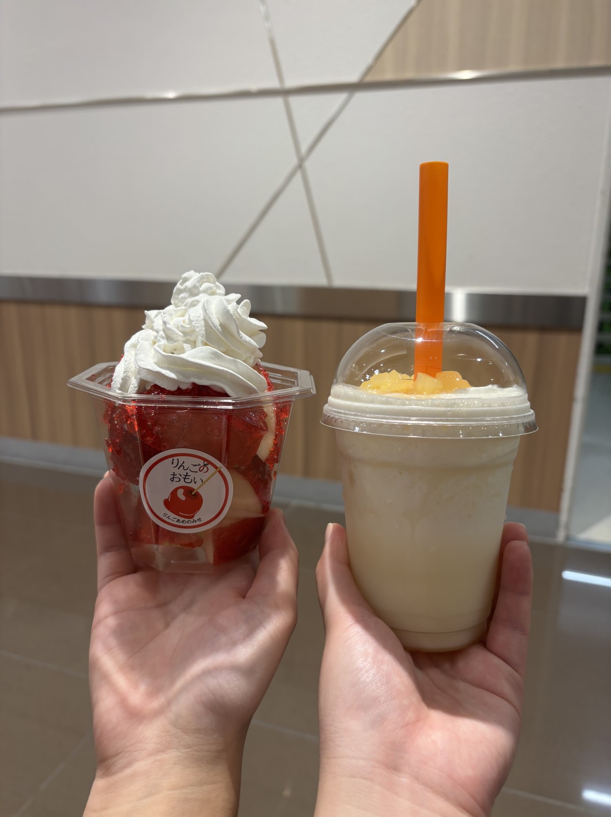 今回はホイップクリームトッピングのりんご飴とフラッペを買いました。
