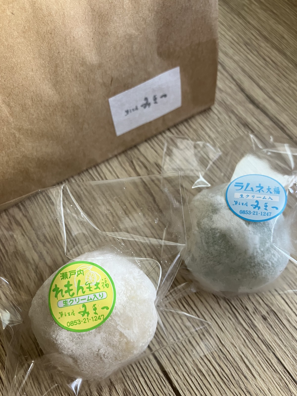 何かしら写真を、ということで、今回はなけなしの現金を叩いて買った「みまつ」の生大福です。
