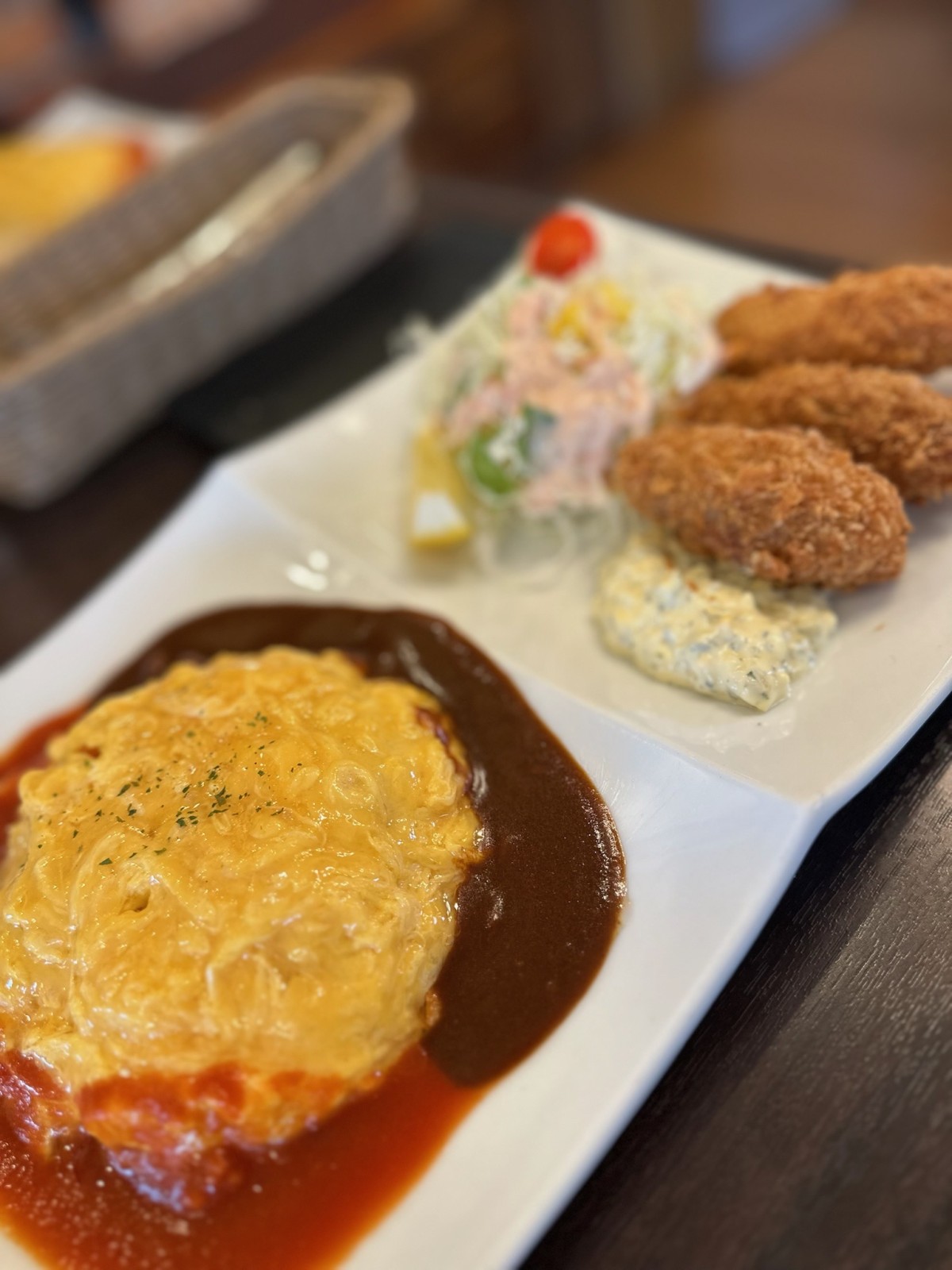 オムライス+ハンバーグやカキフライといったセットもあり、夫婦ともに大満足でした!