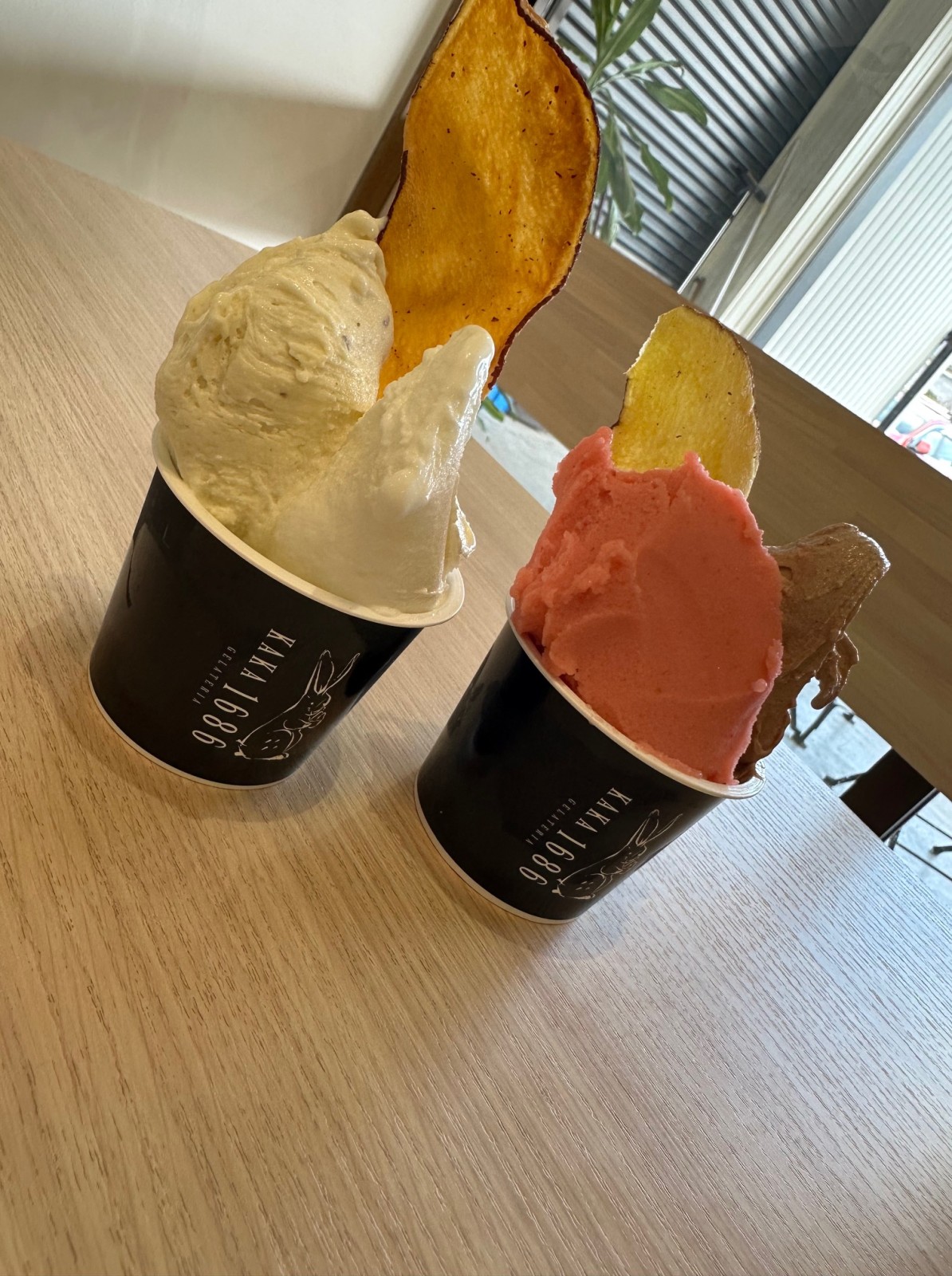 生ドーナツや焼き芋などたくさんのスイーツがある中で私たちはジェラートを選びました!