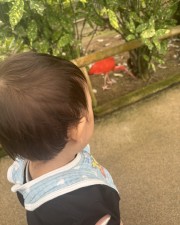 葉っぱがゆらゆら揺れているのに興味津々な息子