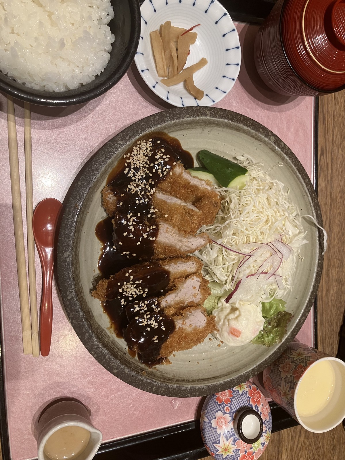 久しぶりに両親が出雲に来ました。昼食はゆめタウン内の和食店「かかし」へ。私と父はとんかつ定食、母はうなぎ飯定食を注文し、穏やかな団欒を過ごしました。