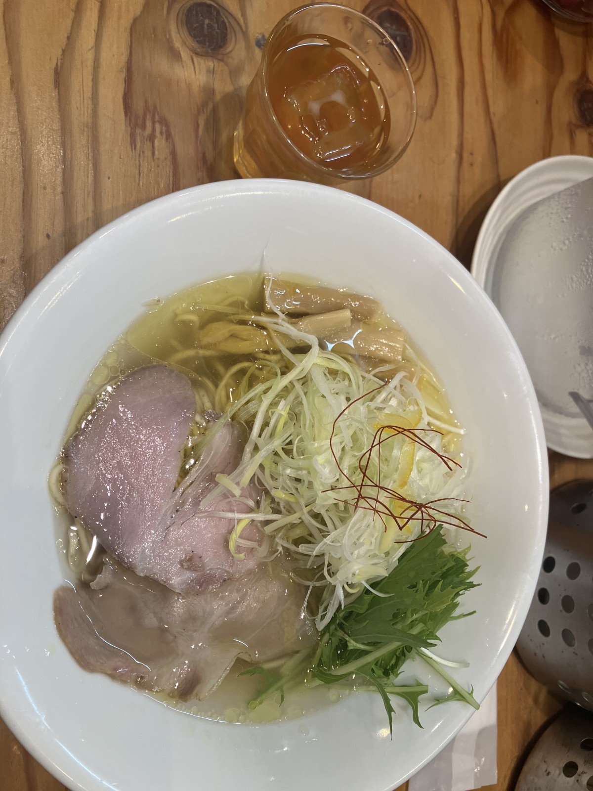 鳥だしスープに惹かれて「ぐり虎」へ立ち寄り、一杯のラーメンを注文。店内は程よく賑わっており、運ばれてきた際には果物のような爽やかなジュースをサービスでいただき、これがまた美味しかったです。透明感のあるスープはほどよい酸味があり、さっぱりとした旨み。こだわりを感じる麺は優しい風味で、とても満足しました。