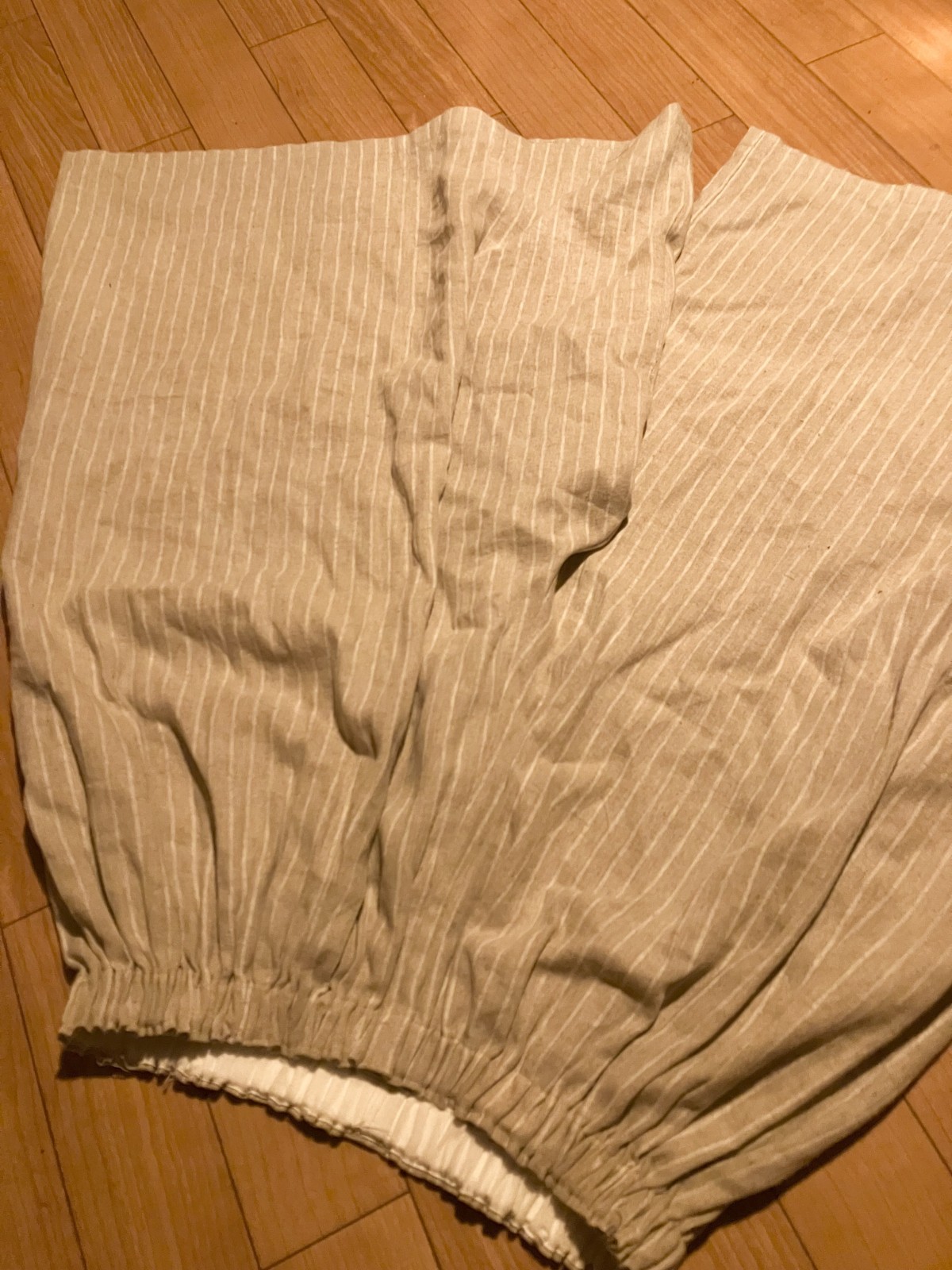 綿麻の生地が余ってたので、簡単なスカーチョ(パンツとスカートの間のような服)を作ってみました。